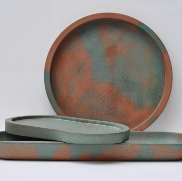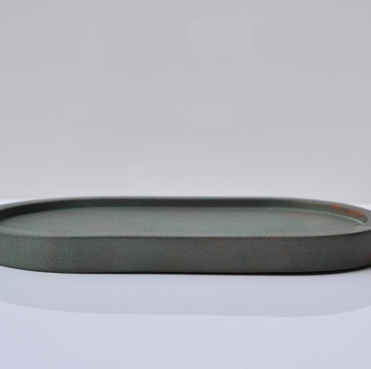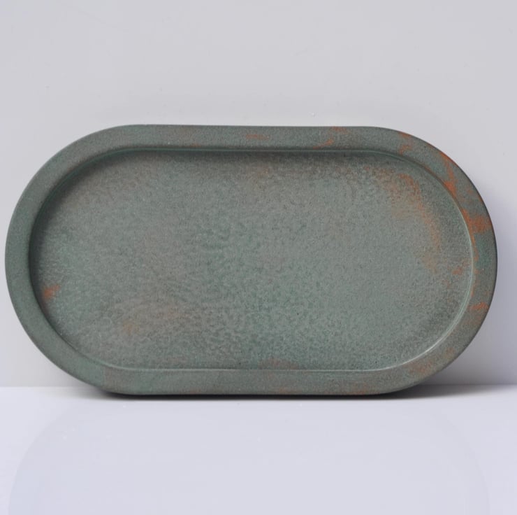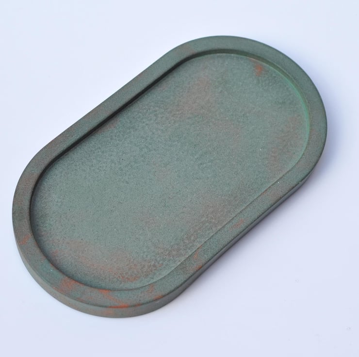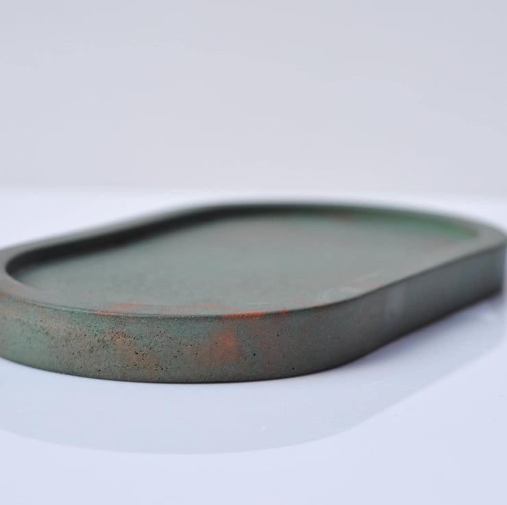 Concrete Tray Handmade Minimalist Decor Green with Orange Accents Oval Trinket Dish Jewellery Holder Modern Home Gift