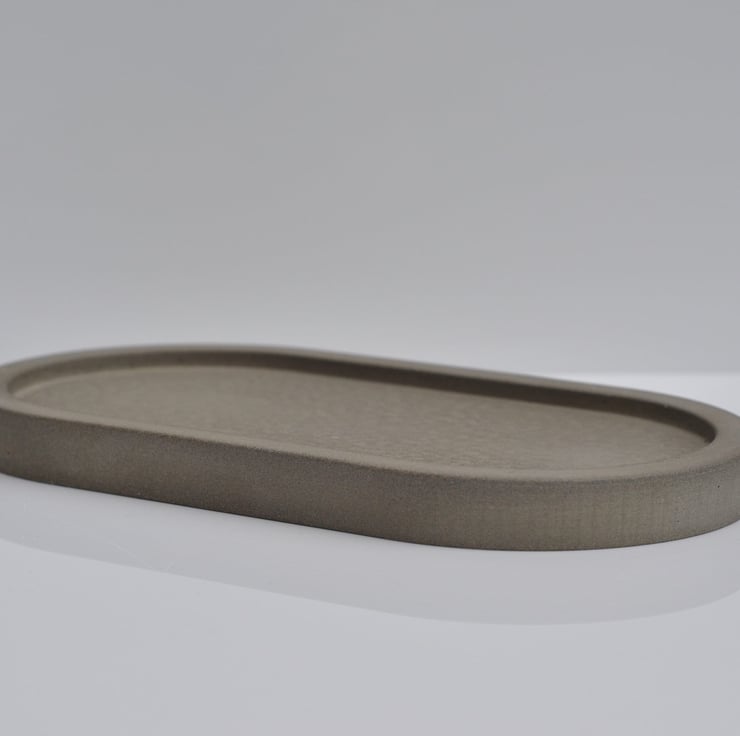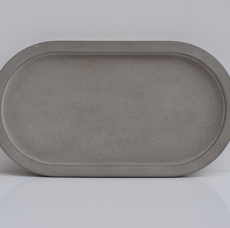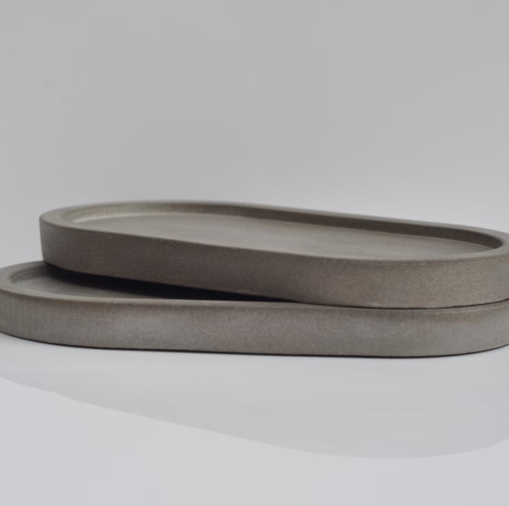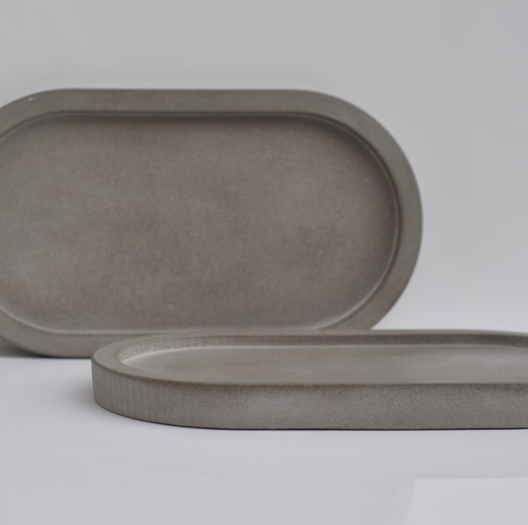 Hand-poured concrete tray, designed with a sleek minimalist look. Perfect for organizing small items or adding a modern, industrial touch to your home decor.