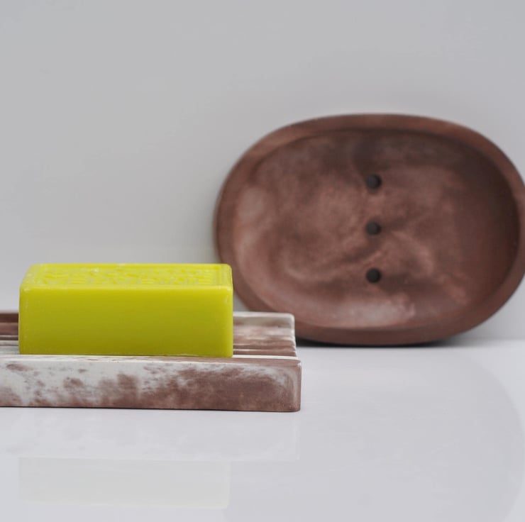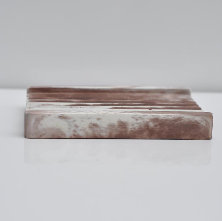 Hand-poured concrete soap dish with a stunning brown and white marble effect. A stylish and functional addition to your bathroom or kitchen, designed to keep your soap dry and enhance your decor.