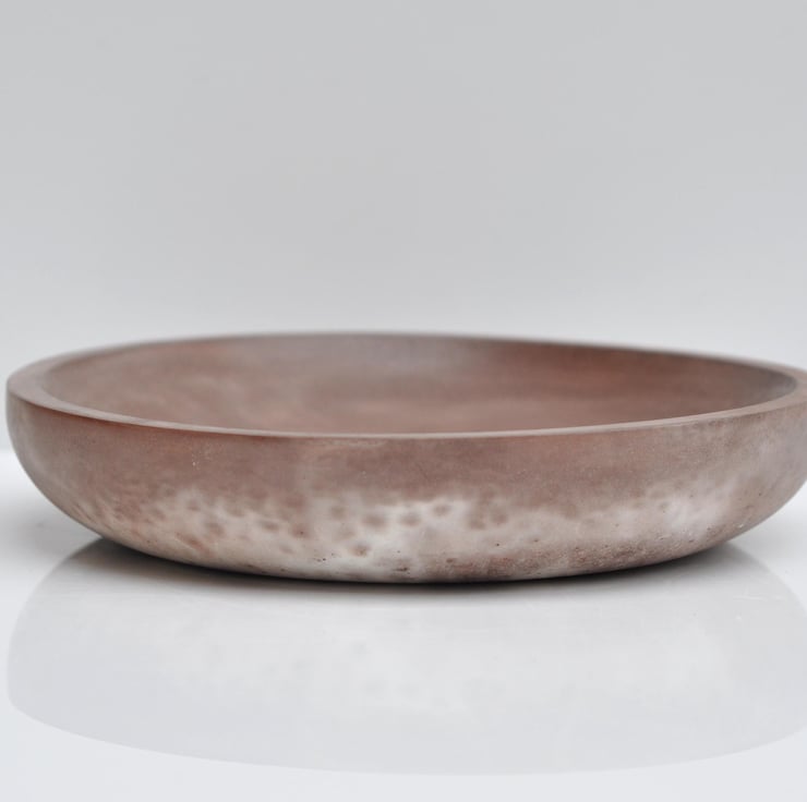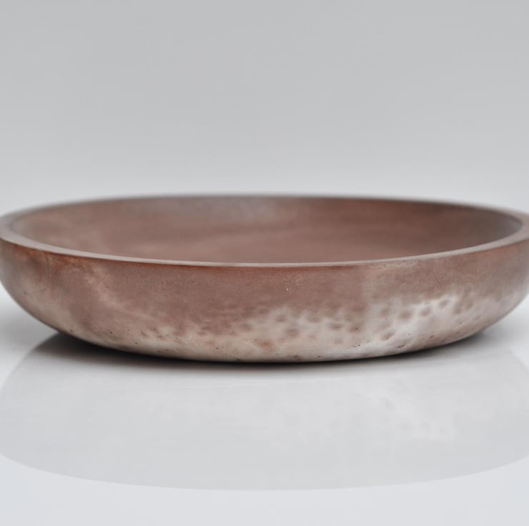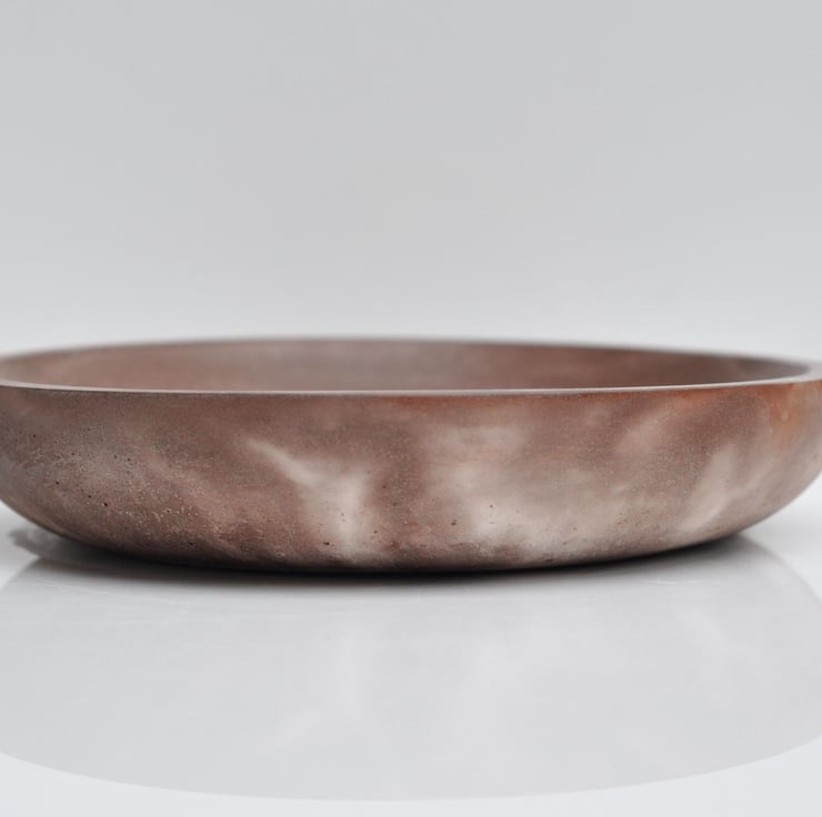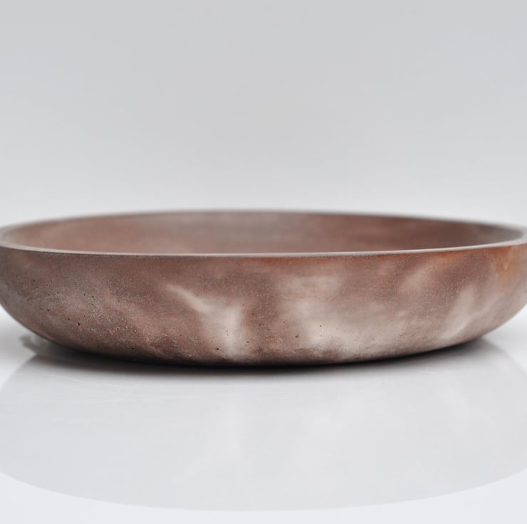 Hand-poured concrete shallow plate with a stylish brown and white finish, perfect for organizing small items like keys, jewelry, or coins. Its minimalist and functional design makes it a great addition to any modern home decor. Use it on your dresser, entryway table, or coffee table to keep everyday essentials in one place.
