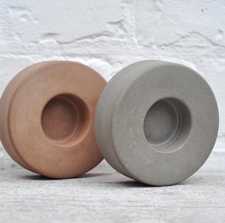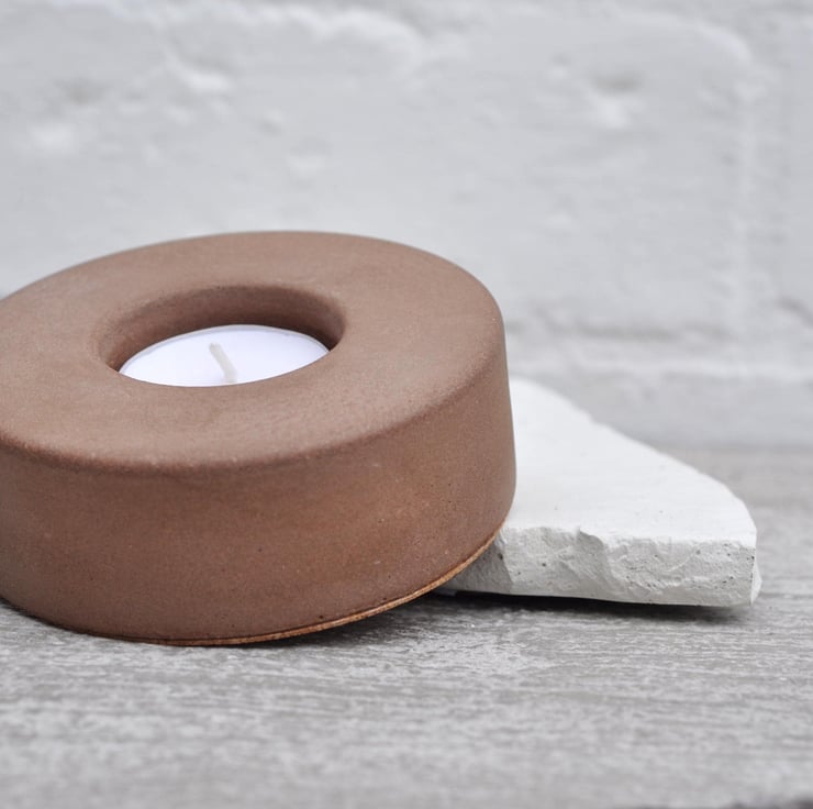 Hand-Poured Concrete Tea Candle Holder Terracotta Brutalist Design Minimalist Concrete Decor Functional Candle Holder for Home & Office