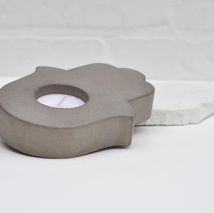 This hand-poured concrete tea candle holder offers a sleek and minimalist design, perfect for adding a modern touch to any space. Its functional yet stylish appearance makes it a standout decor piece.