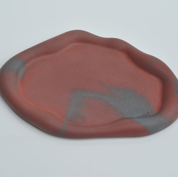 Hand-poured tray sculpted from concrete.