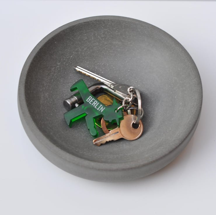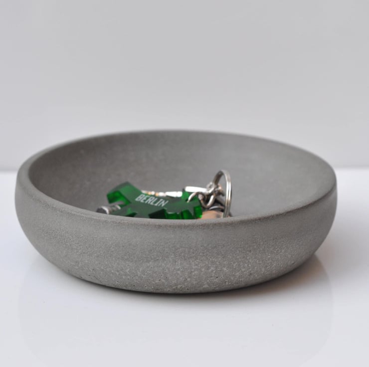 This small yet heavy handmade concrete bowl is perfect for organizing your keys, jewelry, or coins. Its minimalist design makes it both functional and stylish.