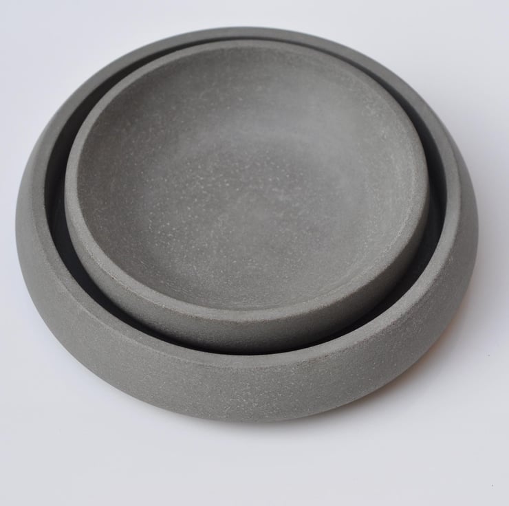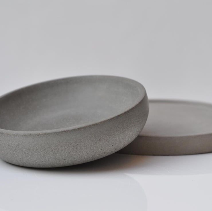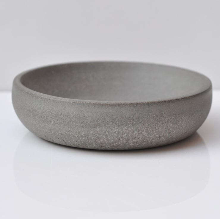 Each bowl is carefully crafted, so slight variations in color, sheen, and the presence of tiny air bubbles may occur. Over time, the concrete will develop a beautiful patina.