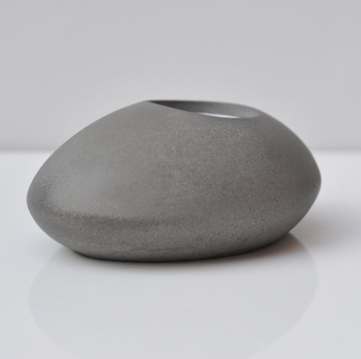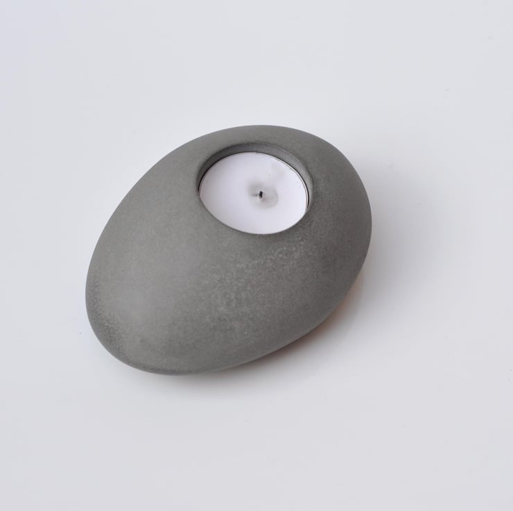 Steel Grey Organic Shape Hand-Poured Tea Candle Holder Sculpted from Concrete