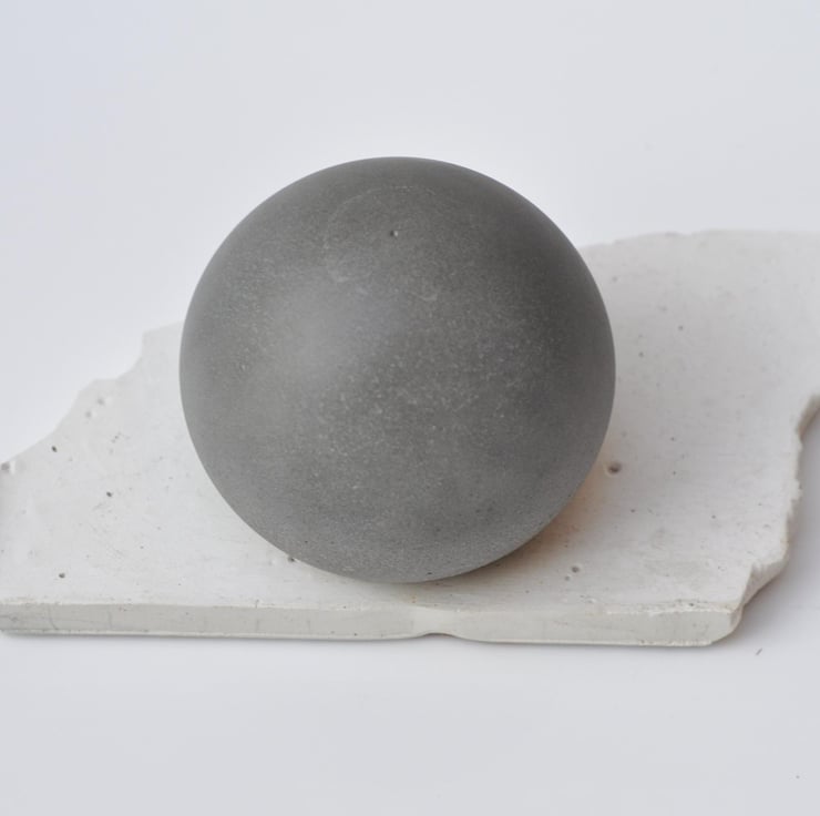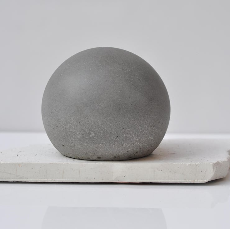 This handcrafted concrete ornament serves as both a functional paperweight and a minimalist decorative piece. Sculpted into a smooth, steel grey sphere, it offers an elegant, modern touch to any desk or surface.