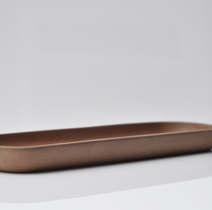Smooth finish with a brutalistic look. A sleek, hand-poured tray, perfect for narrow window sills or mantelpieces.