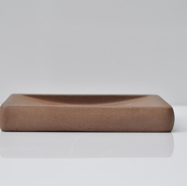 Minimalist and functional. A hand-poured concrete soap dish with a sleek, industrial look.