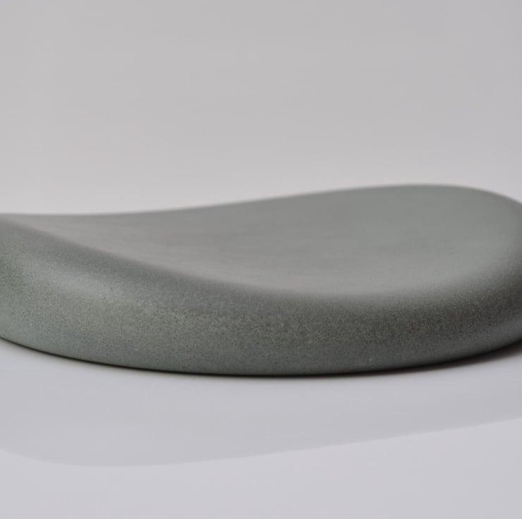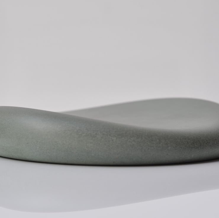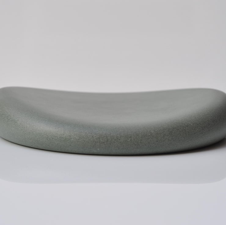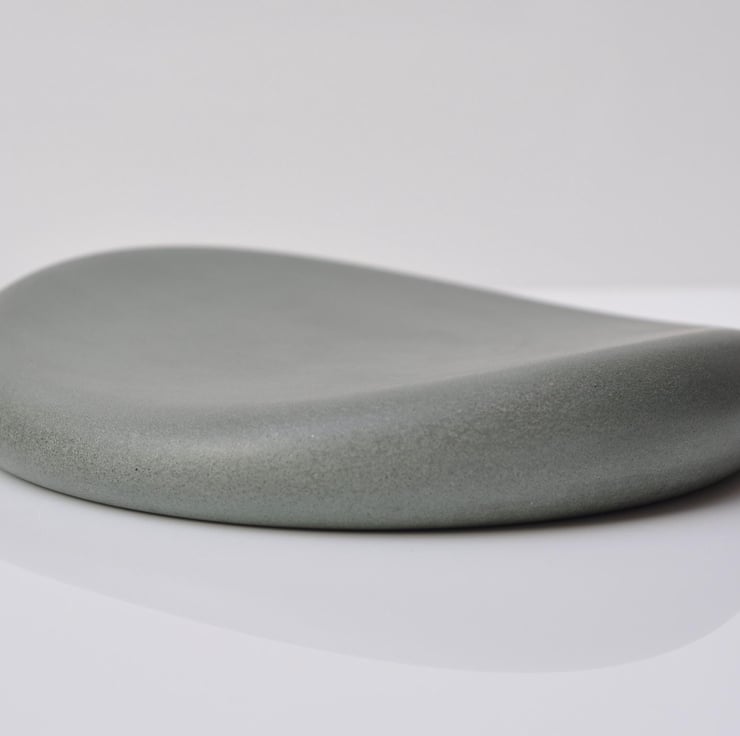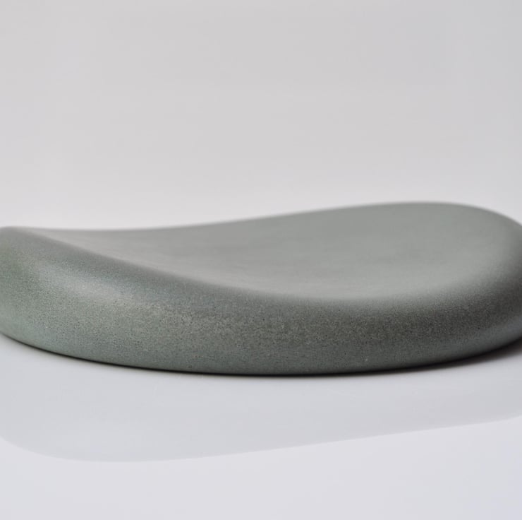 A minimalist and functional hand-poured concrete dish, perfect for displaying jewelry or adding a decorative touch to a shelf or coffee table.