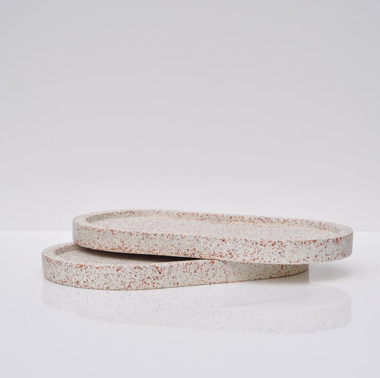 Hand-Poured Terrazzo Tray Sculpted from Concrete