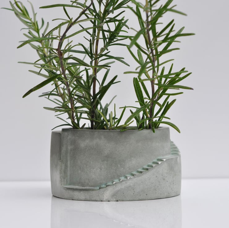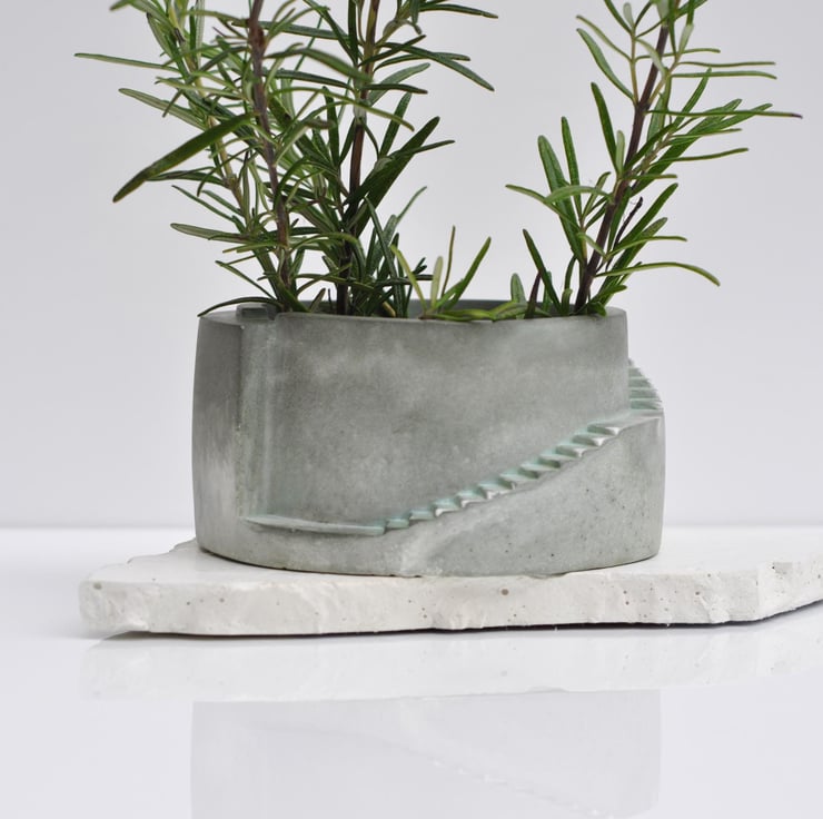 Hand-poured concrete planter with a minimalist design, perfect for small plants or as a decorative piece for your home or office.
