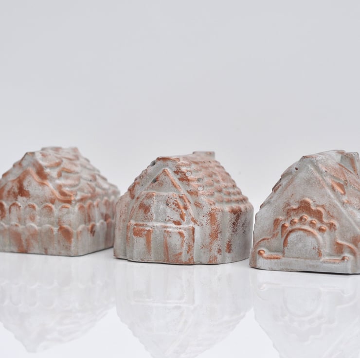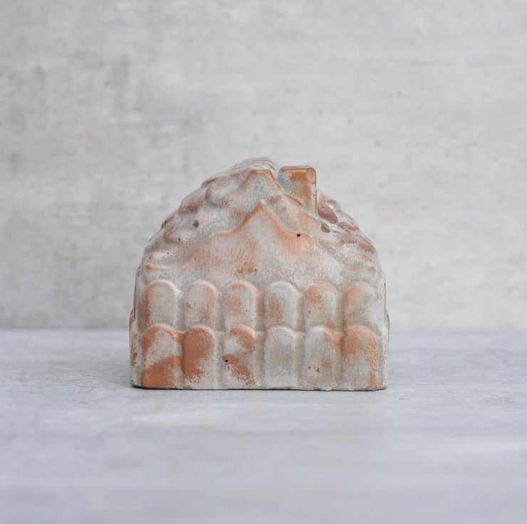 Hand-poured concrete house sculpture, offering a sleek, minimalist design with a painted finish. Perfect as a decorative accent for any space.