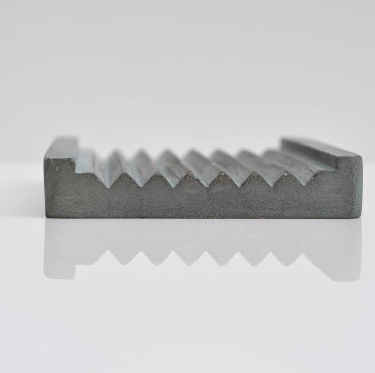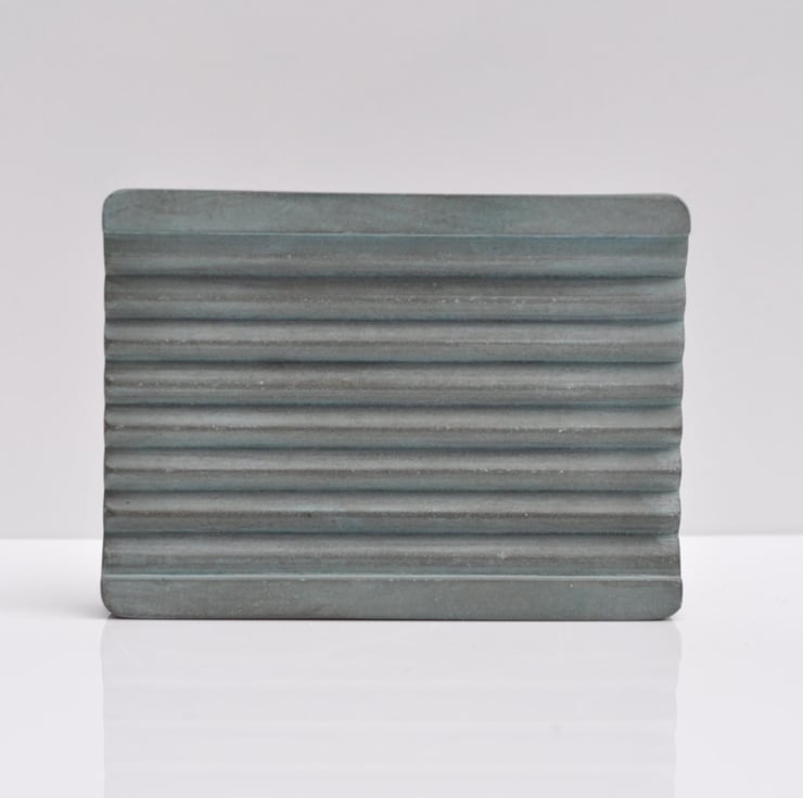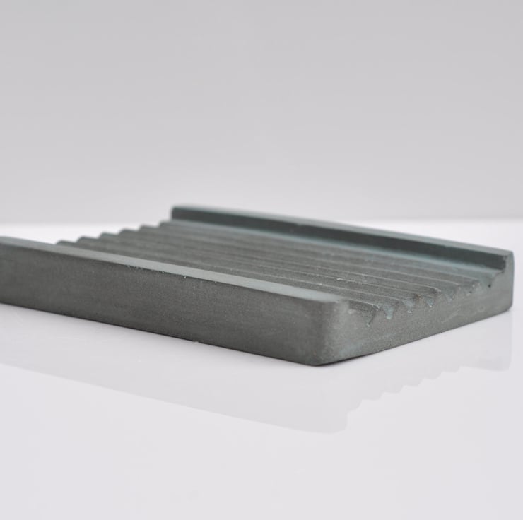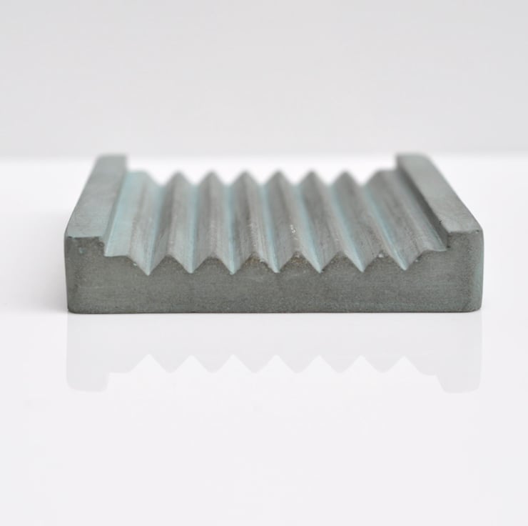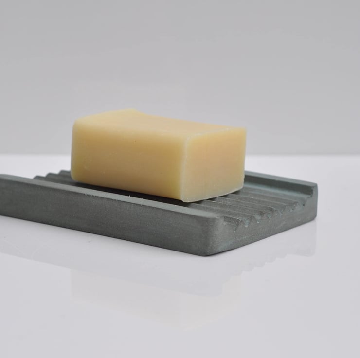 Hand-poured concrete soap dish with a sleek, minimalist design in a soft ash green shade, perfect for adding a modern touch to your bathroom.