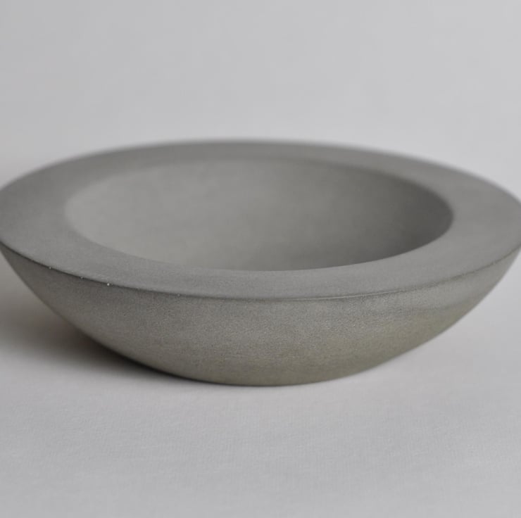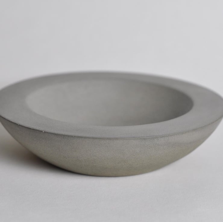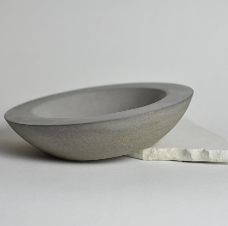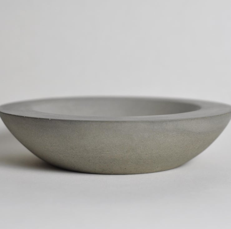 Shallow with a smooth, tactile interior and beautifully framing wide edge, this hand-poured bowl exudes a minimalist, brutalist aesthetic.