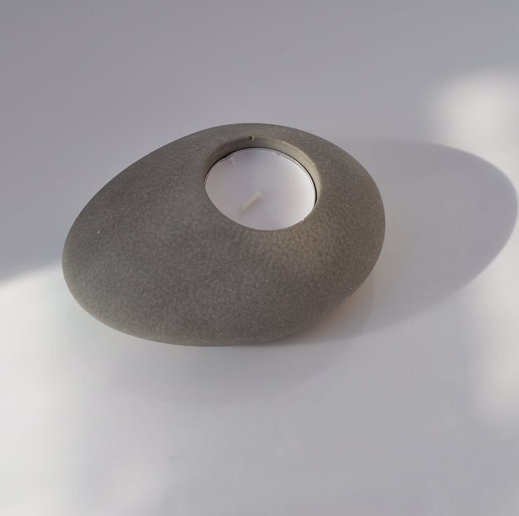 Grey Organic Concrete Tea Candle Holder Handmade Sculpted Holder Minimalist Home Decor