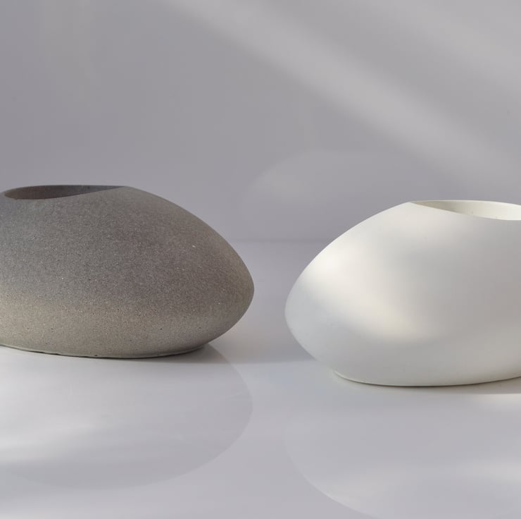 Hand-poured tea candle holder sculpted from concrete, featuring an organic design in white and grey tones. Perfect for adding a touch of minimalist elegance to your space.