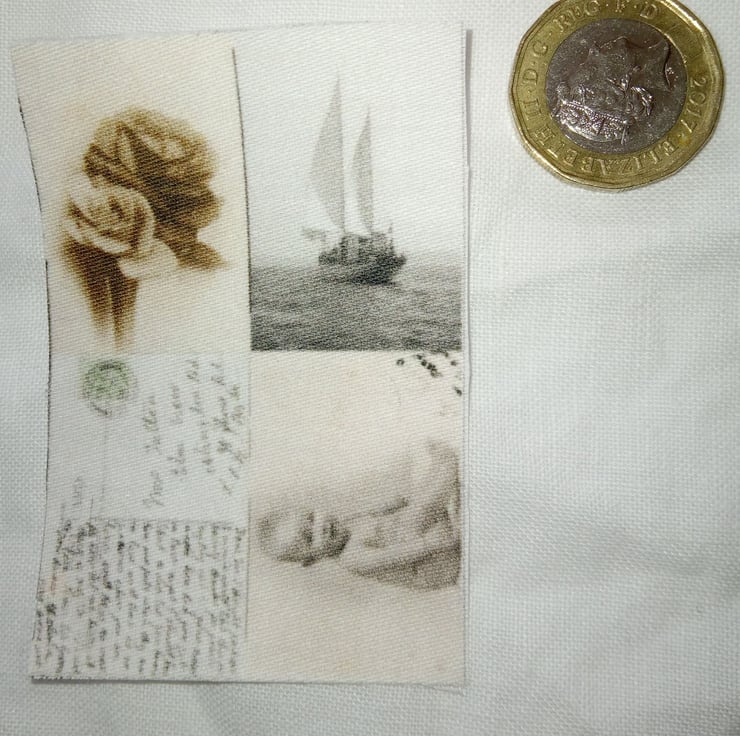 The panel measure 5x7.5cm and can be cut down into 4 images. The images have been professionally printed onto a cotton satin mix fabric, is washable an can be easily sewn by hand or machine. My main reason for making them so small was because I feel visible mending is going to become a big things in fashion, a variation on the Japanese art of kintsugi where you repair things in an obvious way to highlight the history of the object.