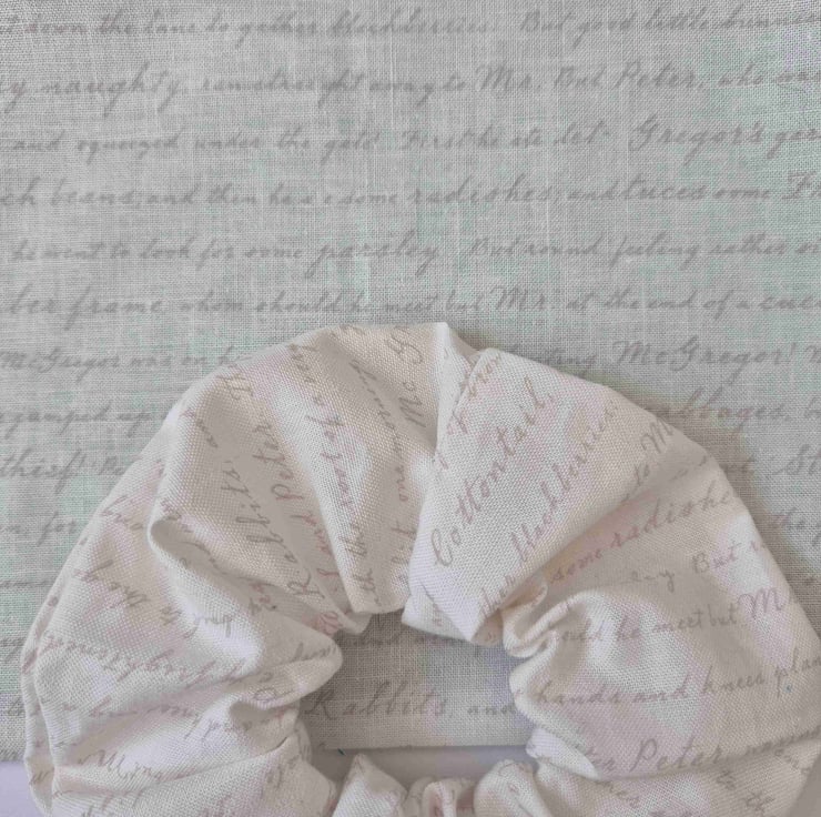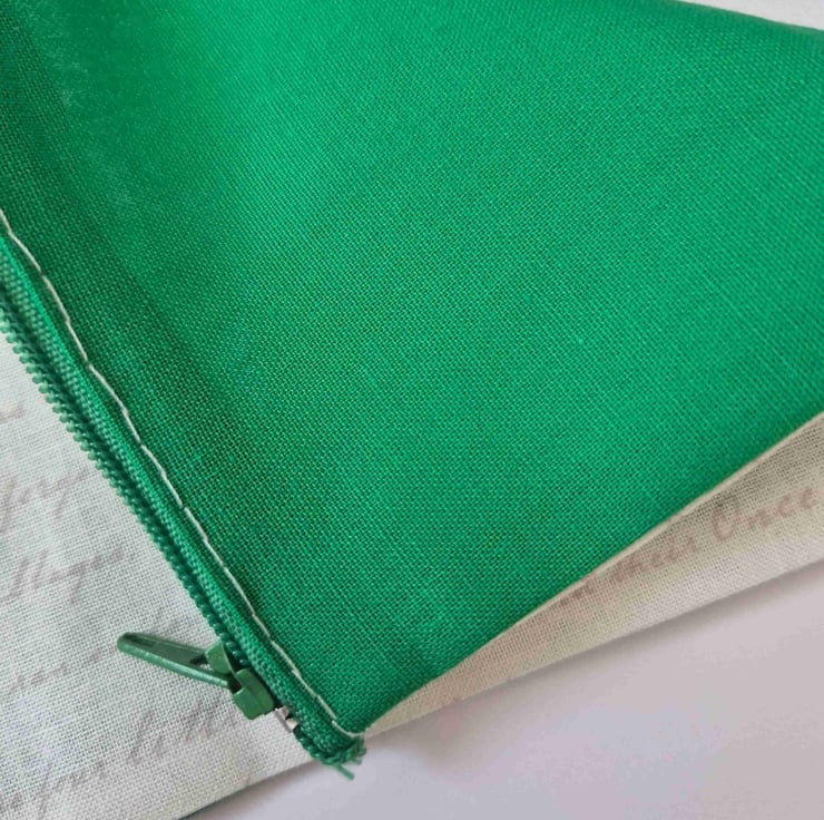 A beautiful handsewn bag for makeup or scrunchies or even pencils. This bag measures 21cm long and is 15cm deep. The scrunchie measures approximately 13cm across.