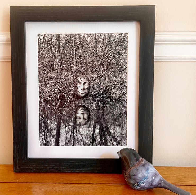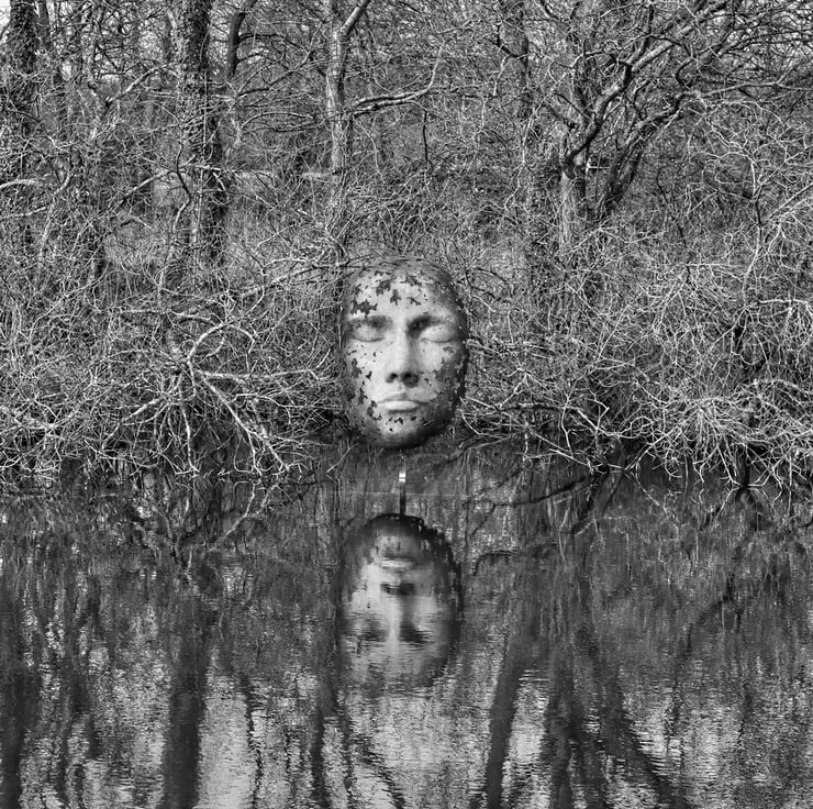 Taken at the beautiful Pallington Lakes in Dorset. This sculpture really stands out in black and white and the image's reflection in the water adds to its surreal beauty.