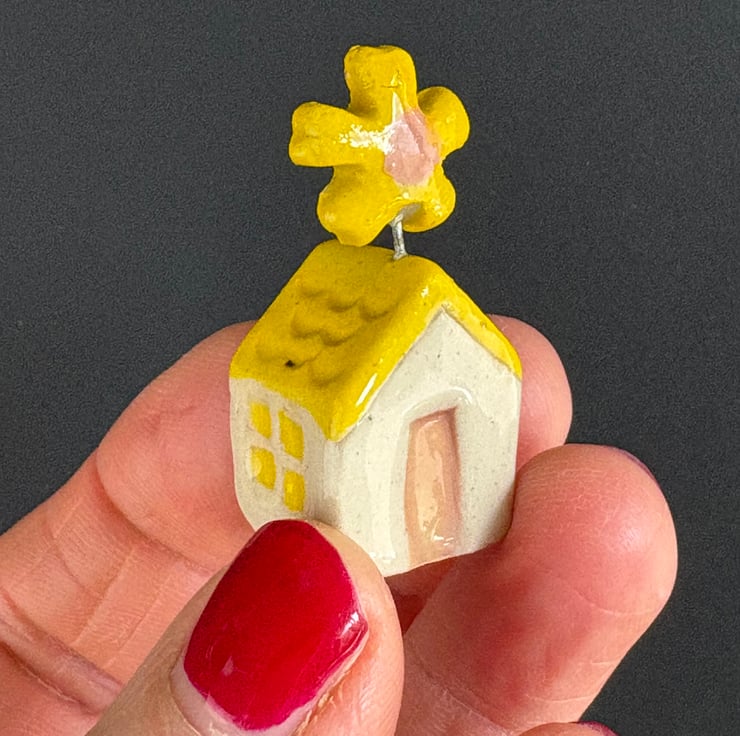 Bring a touch of whimsy to your home decor with our teeny hand-painted ceramic flower house!