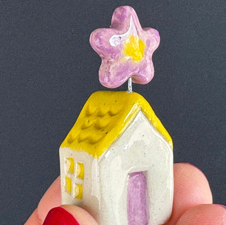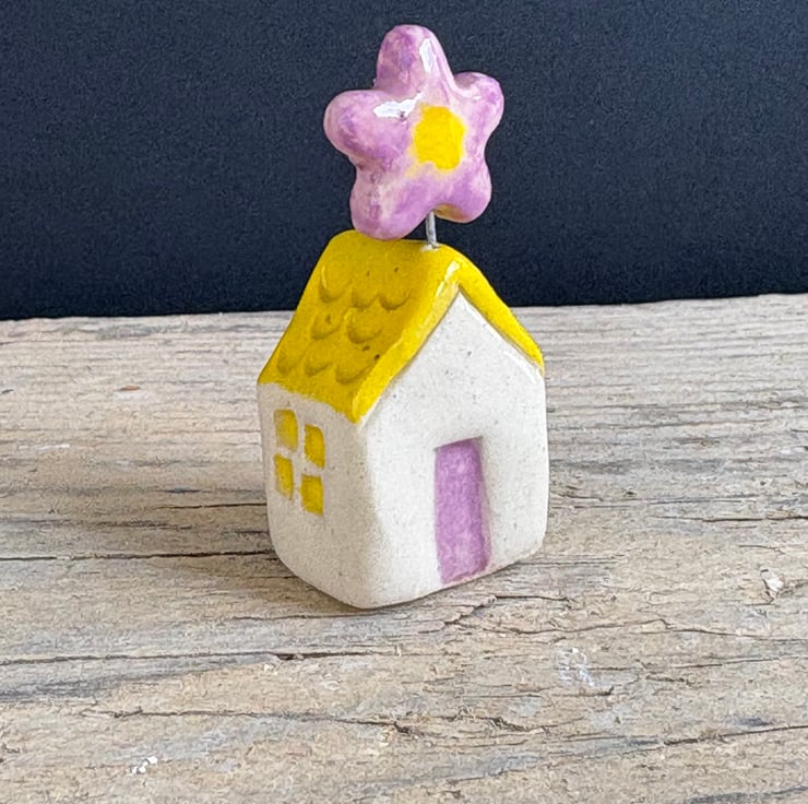 Bring a touch of whimsy to your home decor with our teeny hand-painted ceramic flower house!