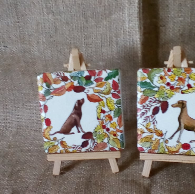Decoupage Set x 2 Ceramic Tiles Heat Resistant each Tile has a Cork Backing and finished with a Poly Vine Glaze tiles are 10cm square these lovely tiles are ideal for a keepsake Gift/Part of your Home Decor Please view my New Store each product is Made with Lovex