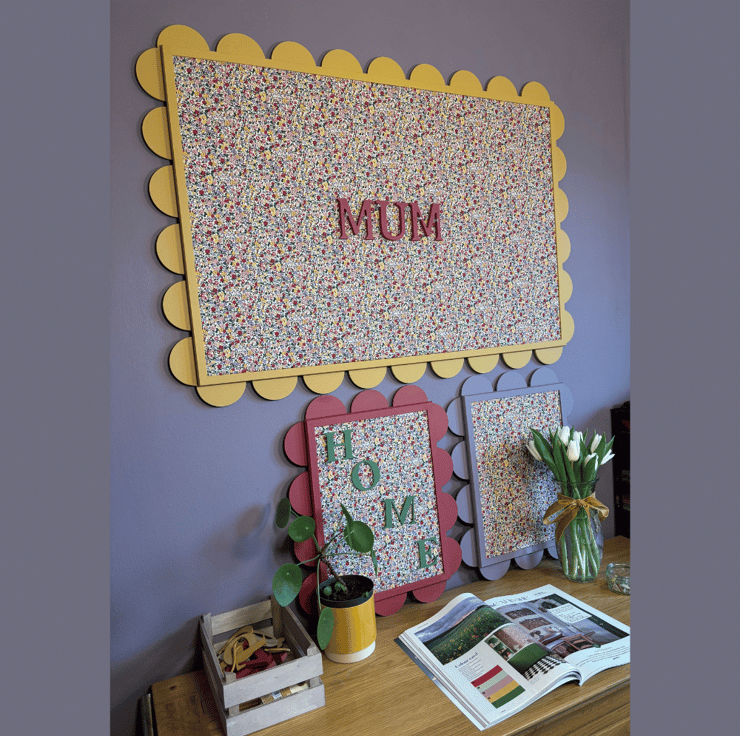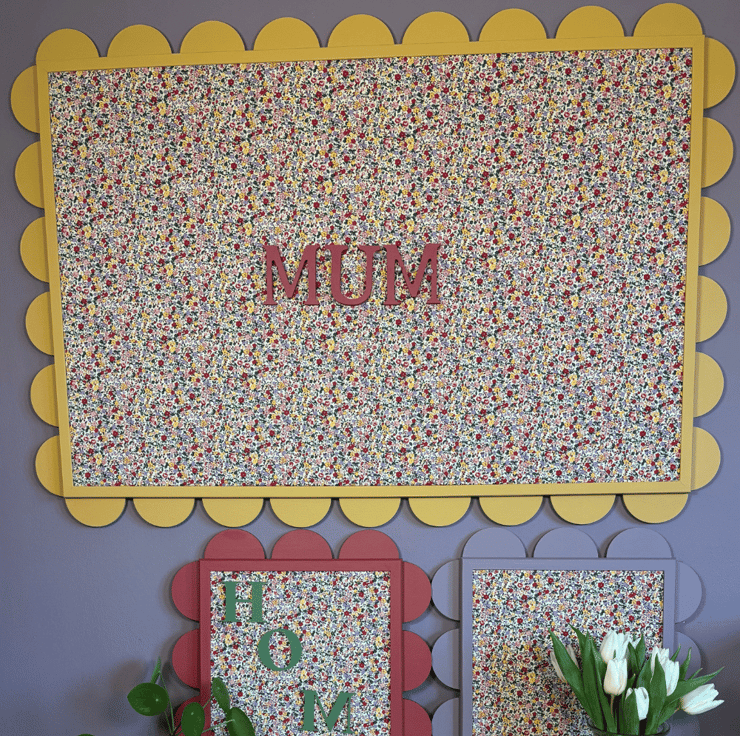 Bring a joyful burst of colour and creativity to any wall with our Large Isla Noticeboard – a handcrafted pin board with a whimsical scalloped edge and charming floral fabric that’s perfect for mums, makers, and memory keepers alike.