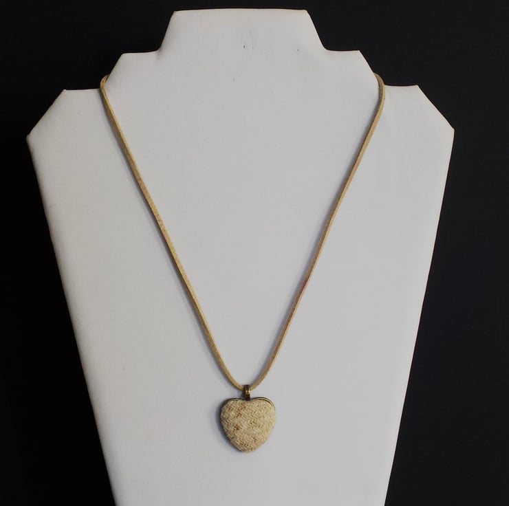 Handmade heart pendant necklace oatmeal cream herringbone Harris tweed