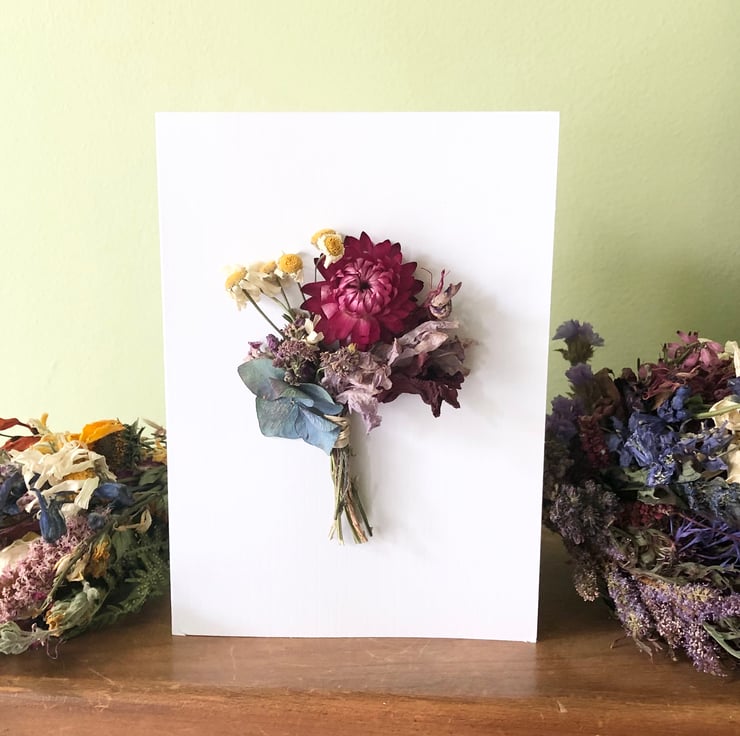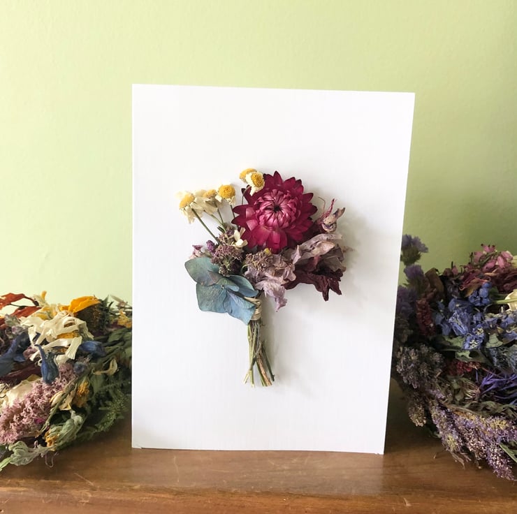 Dried Flower Card. Bouquet Design. Handmade Floral Card.