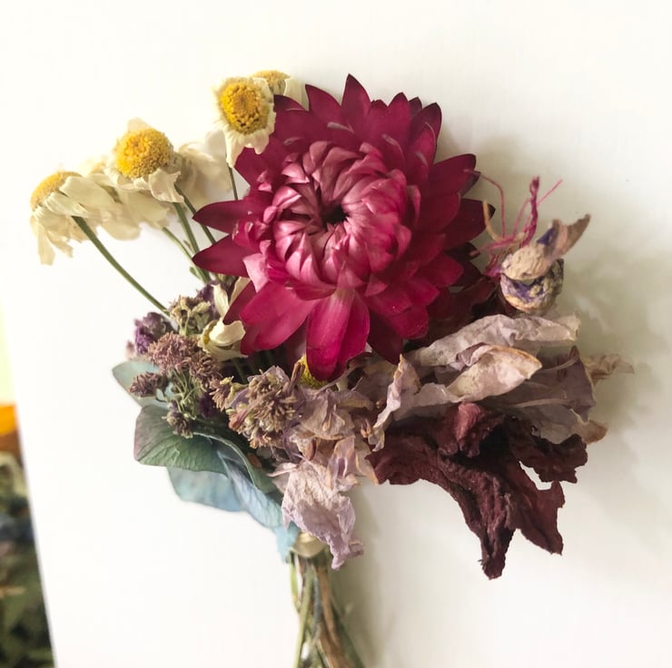 Dried flowers can last for many months if they are well looked after – handled carefully, kept out of direct sunlight and away from water and humidity. Some of the flowers may naturally fade over time.