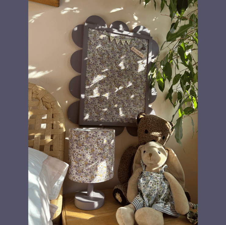 Covered in the same delicate floral cotton as our Rue noticeboard range, this lamp completes the look in any coordinated space – or stands out as a whimsical, light-filled accent on its own.