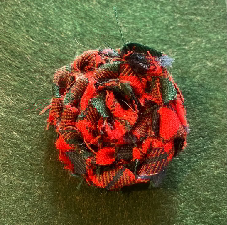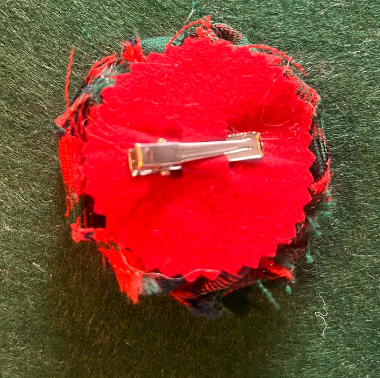 Handmade tartan hair clip styled as a rose