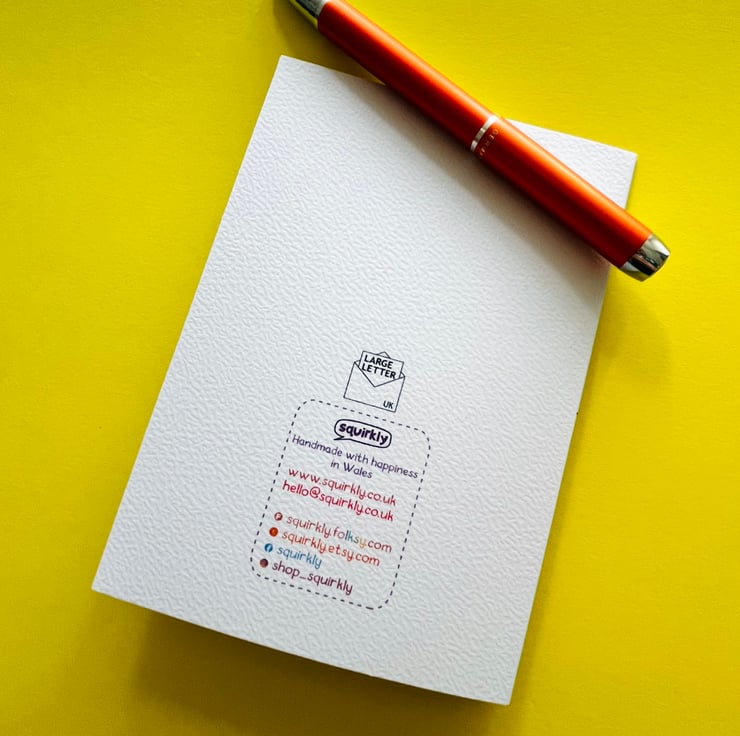 One awesome card (A6 size when folded), blank inside for your own choice of words, with a removable mini 25mm (1") badge.