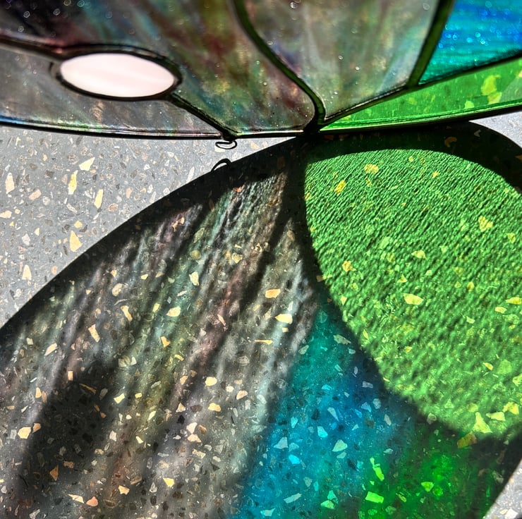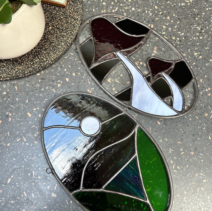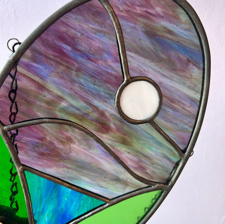Crafted with the traditional 'Tiffany' copper foiling technique, all of my stained glass is completely unique, designed and made by me. This method utilises lead and I take all necessary precautions to seal the piece before sending it out to you but recommend washing your hands after handling for your safety and peace of mind.