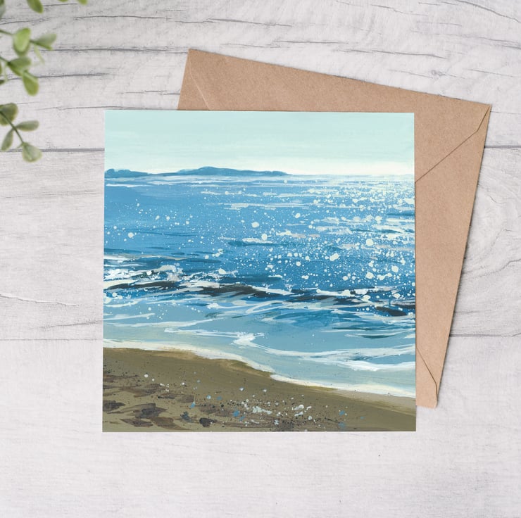 This blank card is printed from my acrylic painting of one early morning on the South Coast. It really looked like the sea was made of sparkling diamonds.