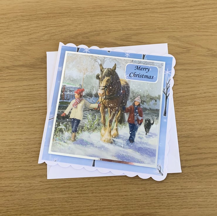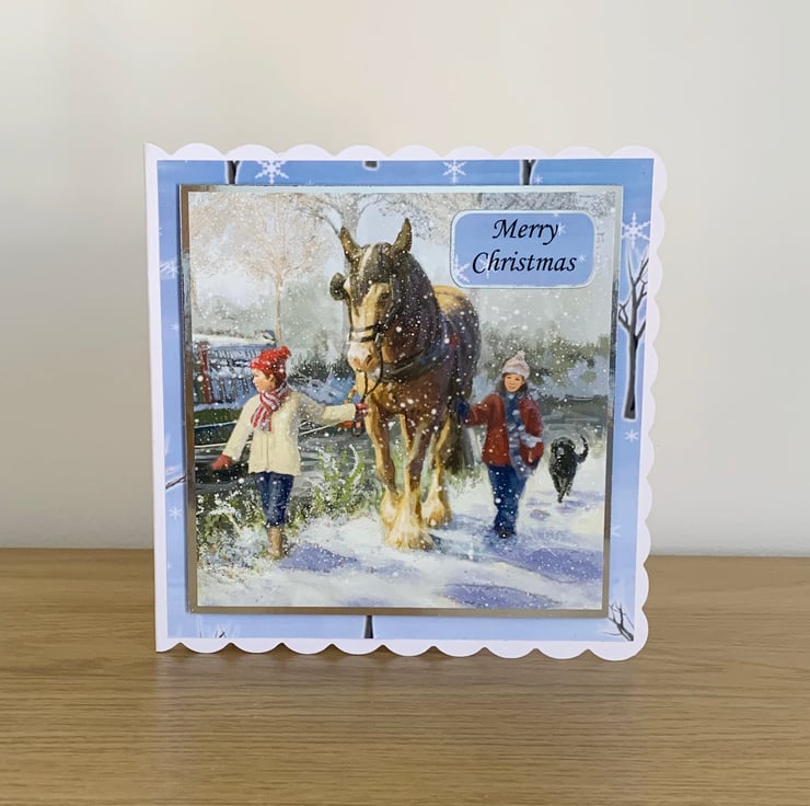 6 x 6 inch 300gsm scalloped white card with matching envelope.