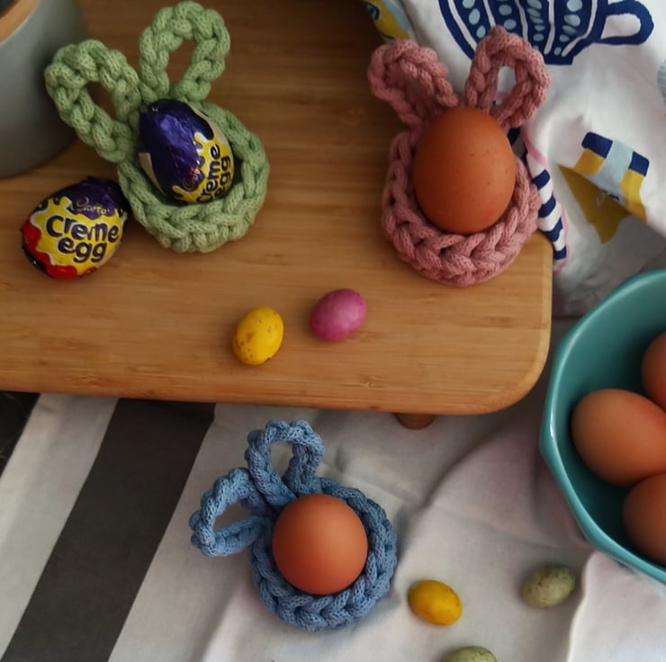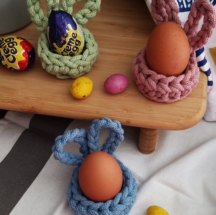 Crocheted with a braided, 100% cotton cord these egg holders are perfect for breakfast holding your boiled egg ready for toast soldier dipping!