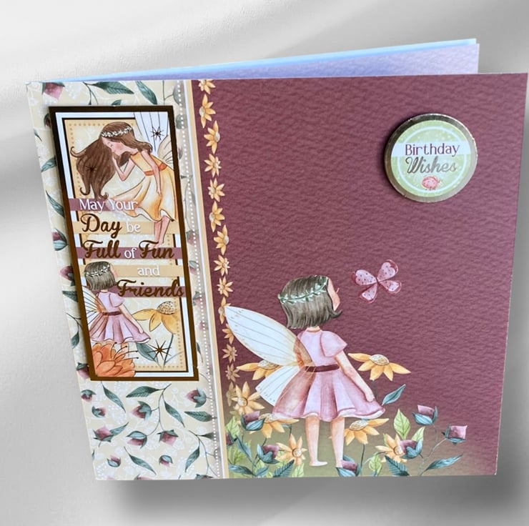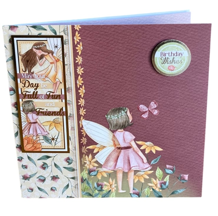 Each card features a pretty fairy design which has been added in 3D to a decorated card background. The cards have different sentiments one says Sending Fairy Kisses the other May Your Day be Filled Full of Fun and Friends, and Birthday Wishes.