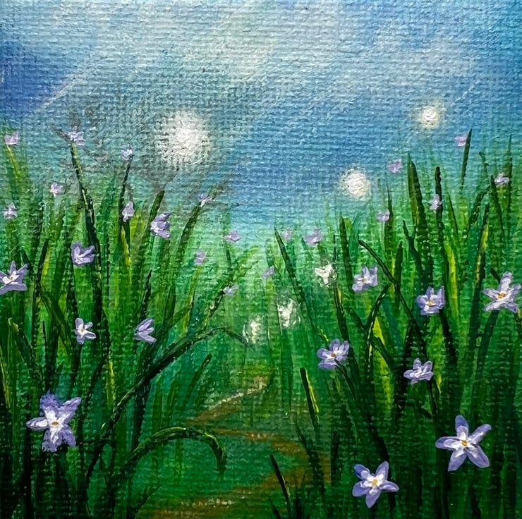 In this magical scene, a tiny, winding path weaves its way through the tall grass—far too small for any human and almost invisible to the naked eye. Yet, here in my artwork, it reveals a hidden world where fairies hover just above it, leading you into the enchanting unknown.