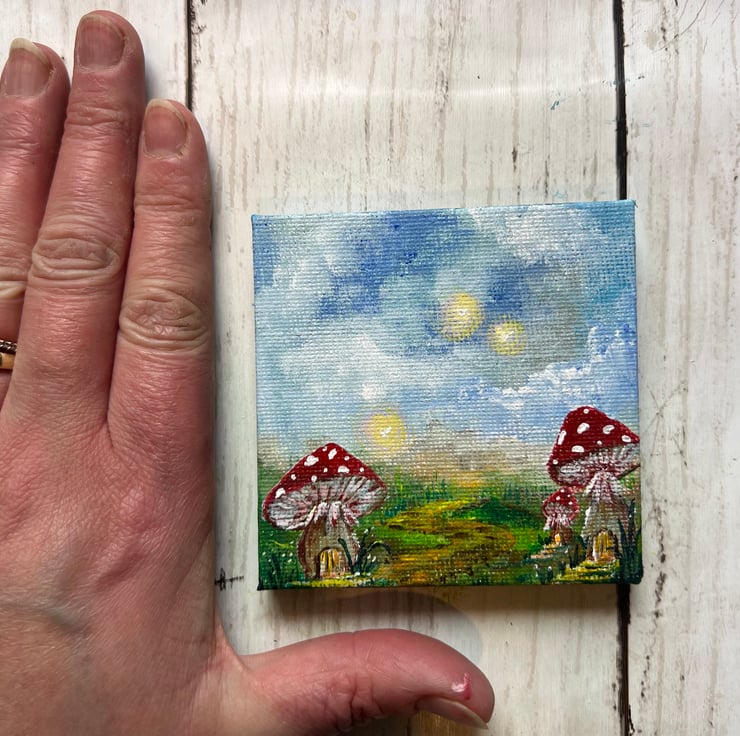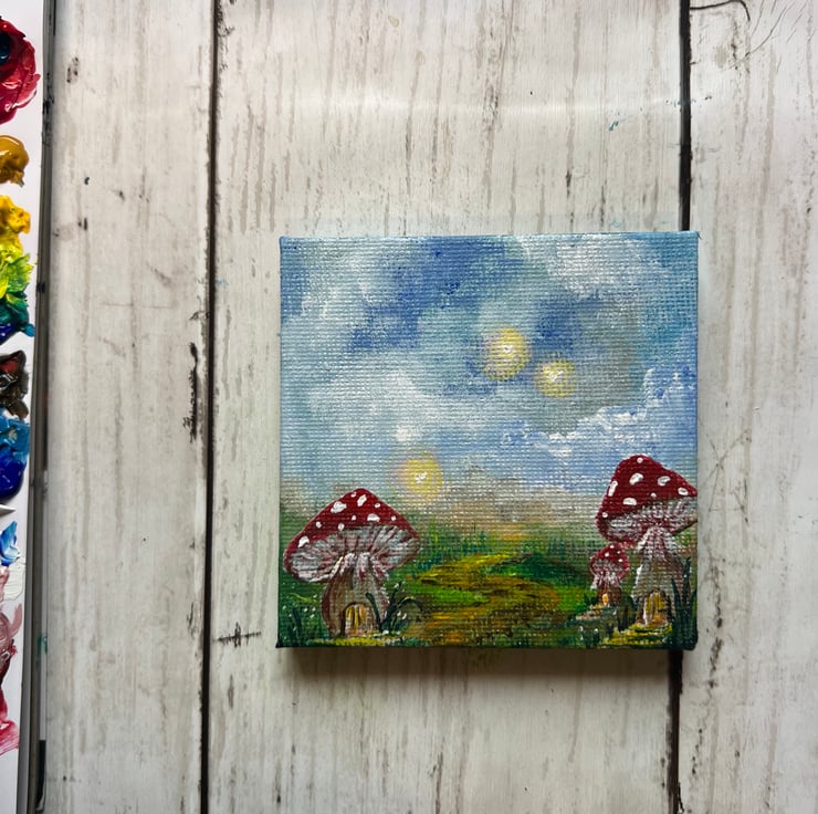 I loved bringing this tiny woodland world to life on my 7cm x 7cm mini canvas — a little window into the magic hidden all around us.