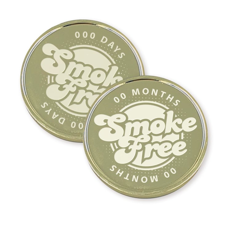 Celebrate quitting with flair! This playful “Smoke Free” coin design features a bubbly retro font that radiates positivity and progress. Whether it's been 1 day or 1 year, this engraved coin is a cheerful reminder of strength, change, and self-love.