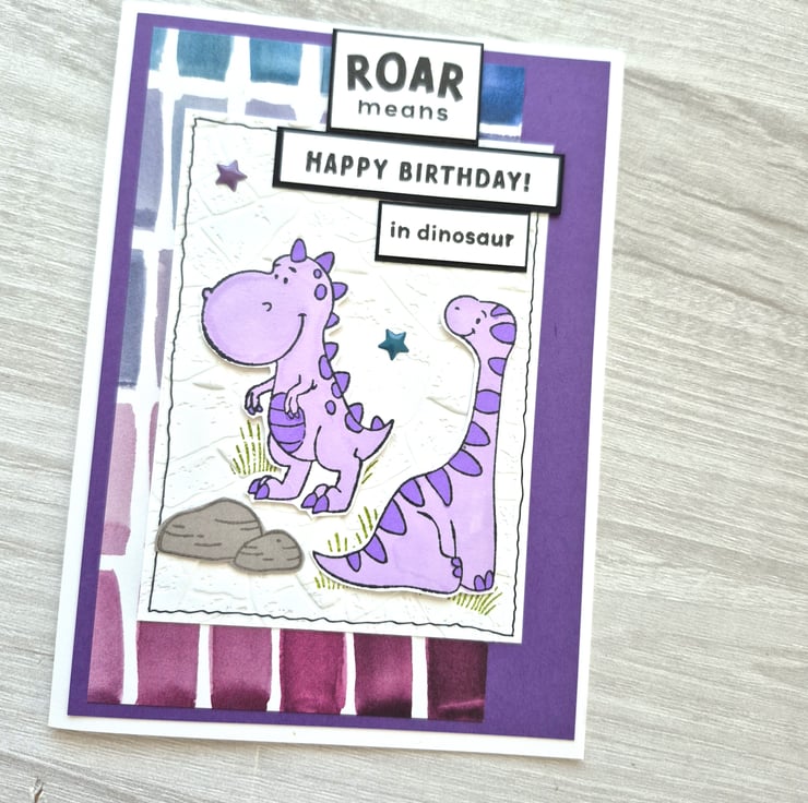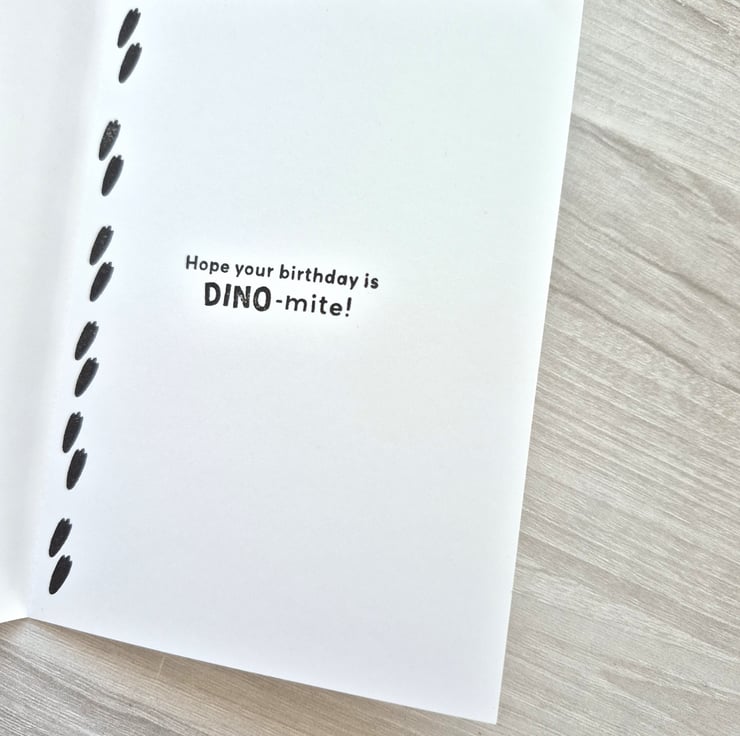 A6 size Dinosaur card. Fun card in bright colours for the dinosaur lover in your life.