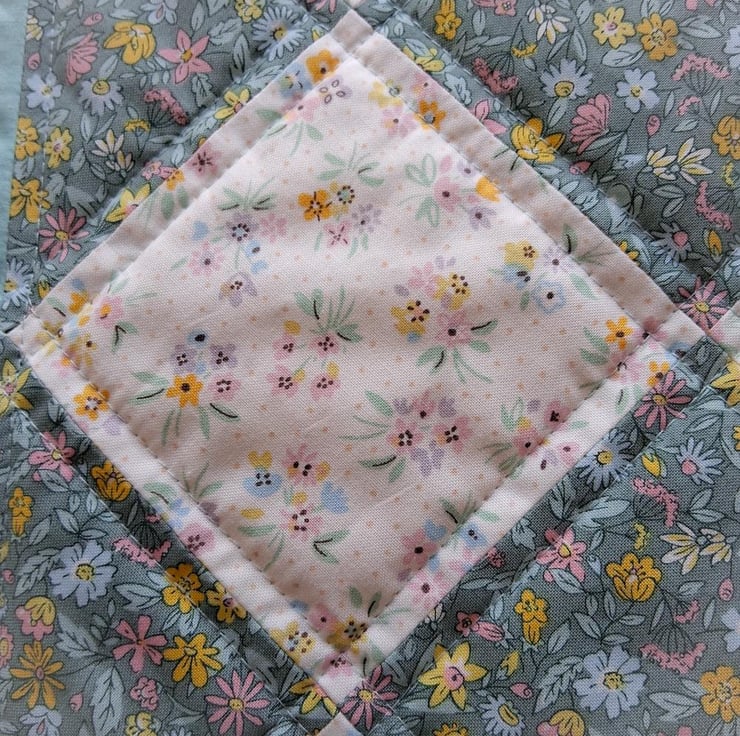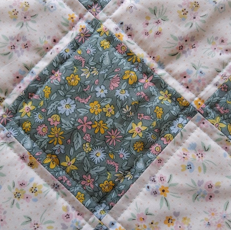 I quilted the squares patterned section and the border with straight lines.