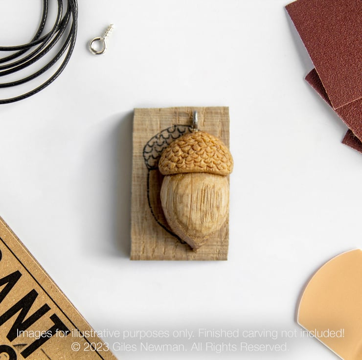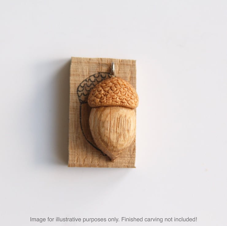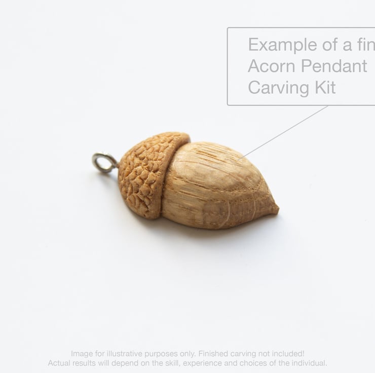 Carve your own Acorn pendant from sustainably sourced Oak or Lime wood. The pendant carving kit contains all of the materials you need in order to carve a beautiful wooden pendant all you need to find is a suitable carving knife (KNIFE IS NOT INCLUDED - Morakniv 120 is a good knife to start with).