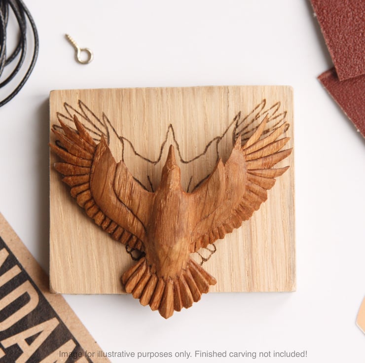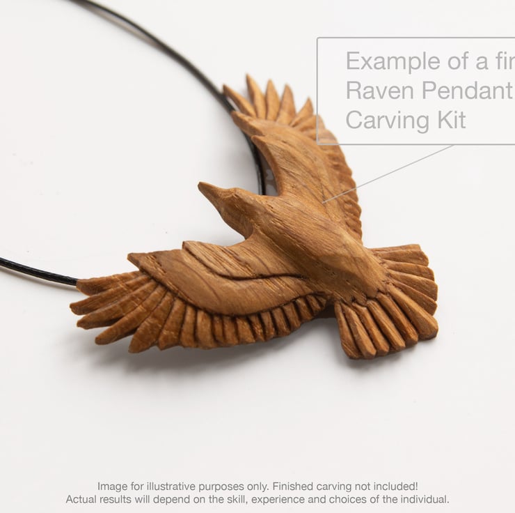 Carve your own Raven pendant from sustainably sourced Oak wood. The pendant carving kit contains all of the materials you need in order to carve a beautiful wooden pendant all you need to find is a suitable carving knife (KNIFE IS NOT INCLUDED - Morakniv 120 is a good knife to start with).