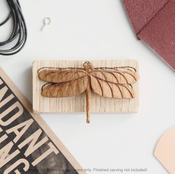 Carve your own Dragonfly pendant from sustainably sourced Oak wood. The pendant carving kit contains all of the materials you need in order to carve a beautiful wooden pendant all you need to find is a suitable carving knife (KNIFE IS NOT INCLUDED - Morakniv 120 is a good knife to start with).