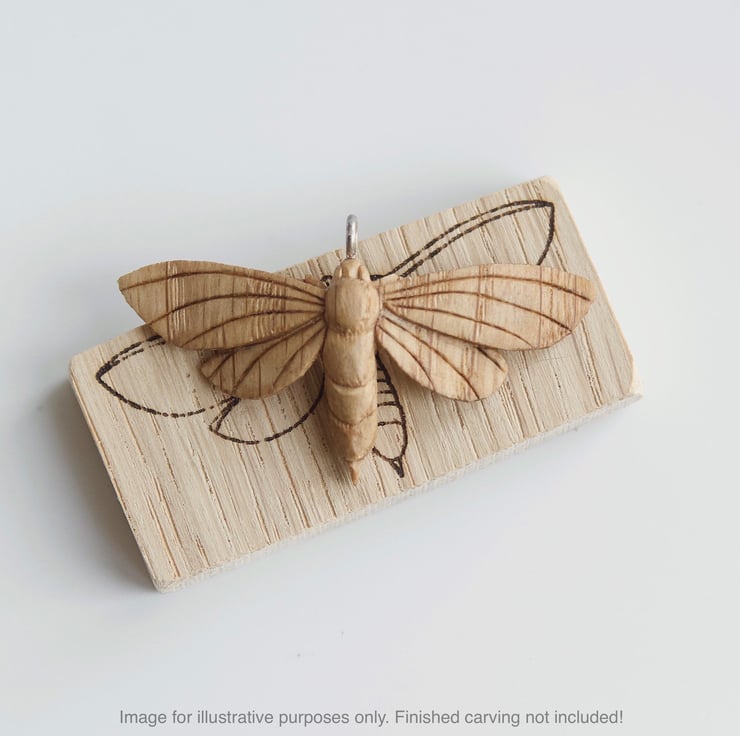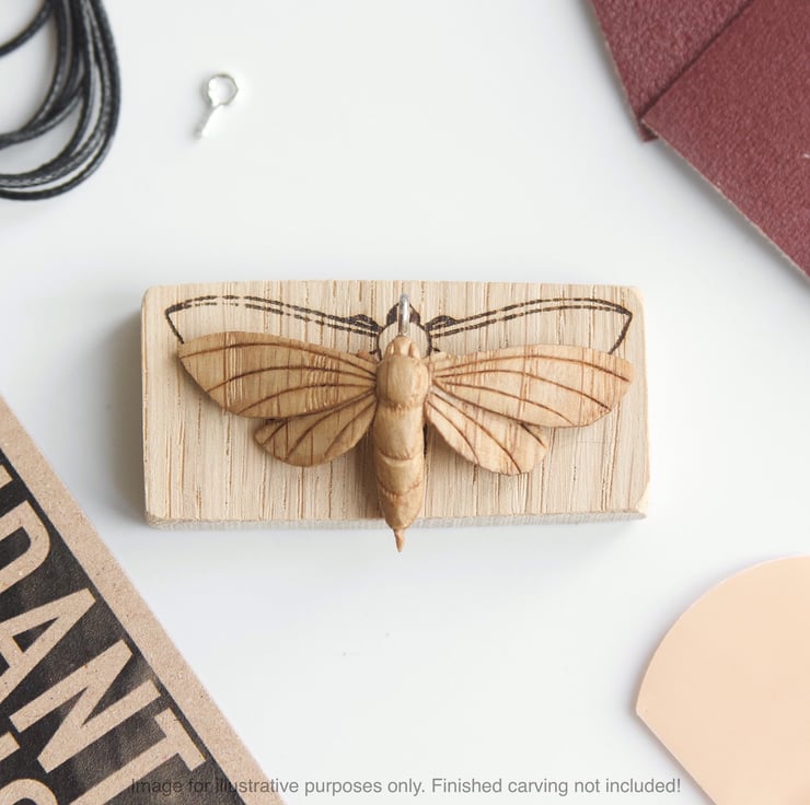 Carve your own Moth pendant from sustainably sourced Oak or Lime wood. The pendant carving kit contains all of the materials you need in order to carve a beautiful wooden pendant all you need to find is a suitable carving knife (KNIFE IS NOT INCLUDED - Morakniv 120 is a good knife to start with).