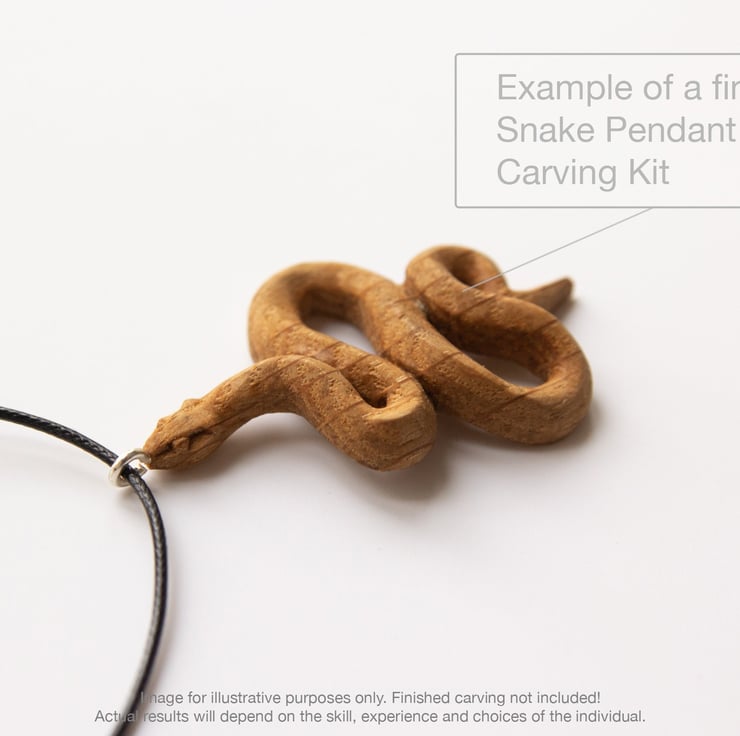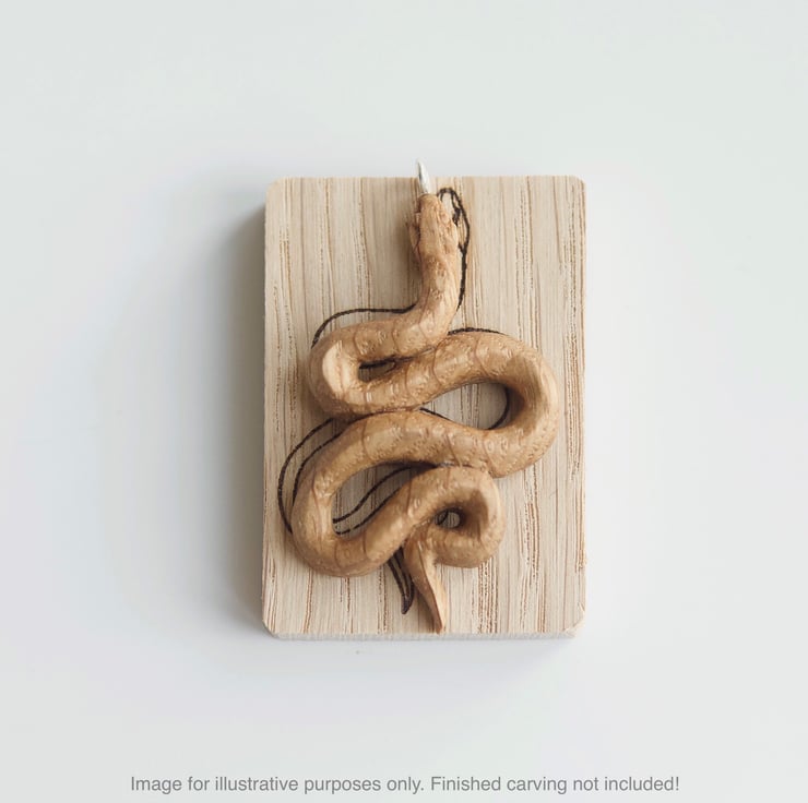 Carve your own Snake pendant from sustainably sourced Oak wood. The pendant carving kit contains all of the materials you need in order to carve a beautiful wooden pendant all you need to find is a suitable carving knife (KNIFE IS NOT INCLUDED - Morakniv 120 is a good knife to start with).