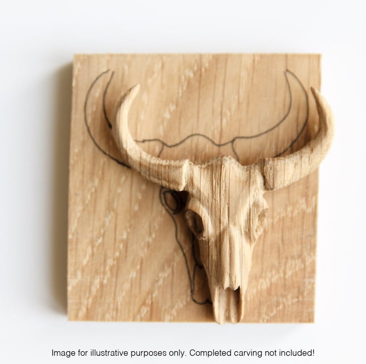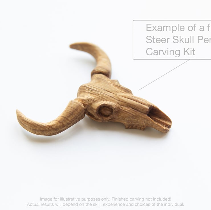 Carve your own Steer Skull pendant from sustainably sourced Oak wood. The pendant carving kit contains all of the materials you need in order to carve a beautiful wooden pendant all you need to find is a suitable carving knife (KNIFE IS NOT INCLUDED - Morakniv 120 is a good knife to start with).